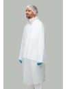 El material de la bata blanca, con espesor de 0,02 mm (galga 80), proporciona una excelente protección frente a partículas secas, combinando ligereza y comodidad para realizar tareas de corta duración en entornos controlados.